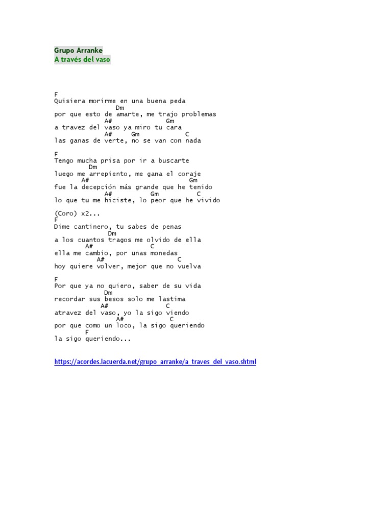 A Través Del Vaso Letra : Letra y acordes de guitarra.