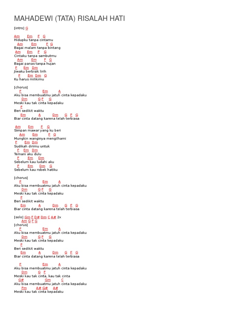 Chord Risalah Hati / Chords takkan ada cinta yang lain.