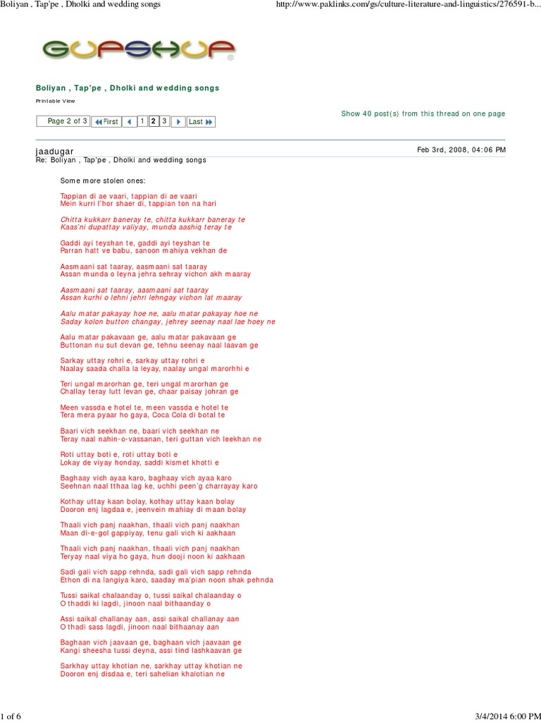 Dholki Songs Lyrics / Here is a collection of wedding song lyrics that are into urdu/hindi/panjabi.