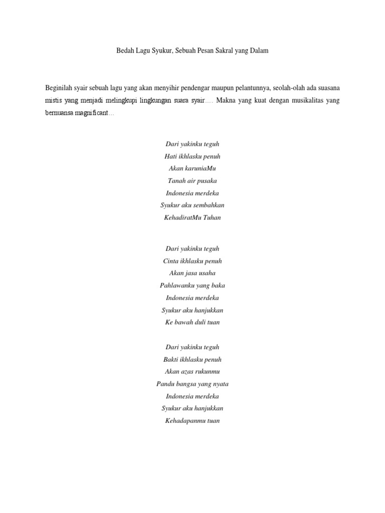 Lagu Syukur Diciptakan Oleh Brainly : Lirik, makna dan sejarah lagu syukur, not, lagu wajib nasional indonesia.