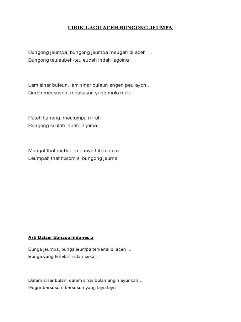 Lirik Bungong Jeumpa / Not angka lagu bungong jeumpa dan not balok lagu bungong jeumpa disertai chords dan audio untuk mendengar melodi lagunya.