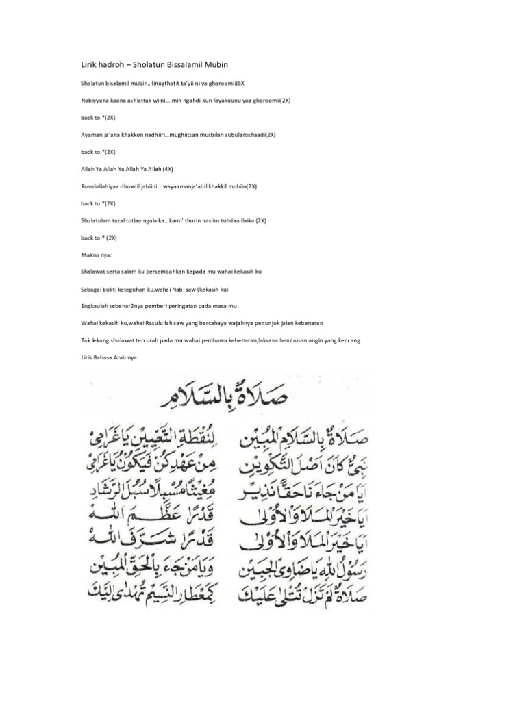 Lirik Lagu Sholatun Bissalamil Mubin Bahasa Indonesia - Download lagu lafadz lirik sholatum bissalamil mp3 gratis dalam format mp3 dan mp4.