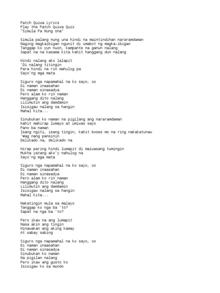 Simula Pa Nung Una Lyrics - Tanggap ko yun noon kampante na ganun nalang.